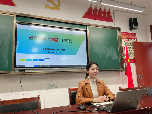 為了貫徹落實教育“雙減”政策,提升教師的教學能力和科研水平,促進教師在課題研究方面取得新進展。近日,常山縣龍繞中心小學特邀常山縣教師進修學校副校長、副主任蔣曉燕老師,為全體教師開展了一場主題為《教育科研“課題”的研究》講座,這是本學期“崇正”書院的二次活動。