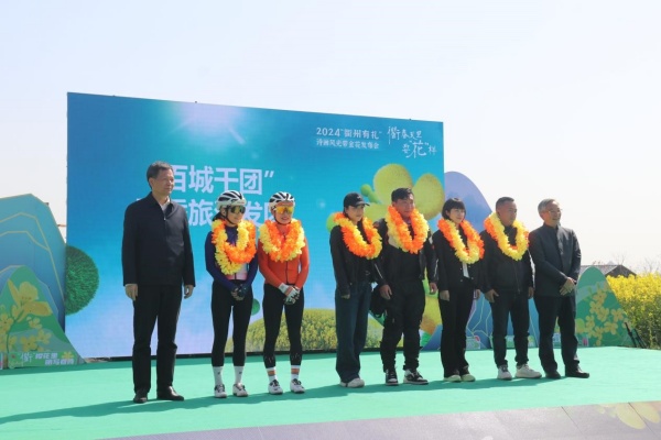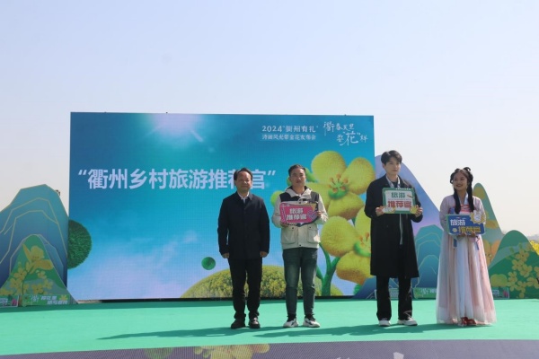 活動現場歌伴舞《天下龍游》、音樂情景快板《十大賞花基地武林發布令》等節目沉浸式向大家推介了欣賞衢州美景的旅游路線;金牌導游推介鄉村漫游“衢味十二記”,每月一味,味味入心甜,三月的“花味”更是溢滿衢州城?,F場還進行“衢州鄉村旅游推介官”授牌,并首發衢州節氣風物村打造計劃,吸引了眾多游客拍照打卡?;顒幼詈笈e行“百城千團”春季旅游發團儀式,相關領導為自駕游團隊、摩旅團隊、自行車旅游團授啟程“花環”,推動衢州文旅走向全國。