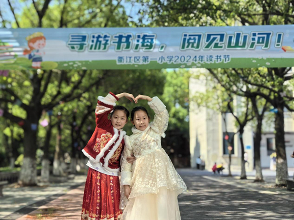江益珍校長為開幕式致辭,鼓勵孩子們多讀書,讀好書,讓書本帶著大家遨游廣闊的世界,孩子們穿著書中人物的服飾,在春意盎然的校園留下春日讀書的美好瞬間。