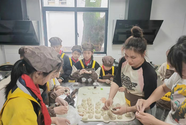 “這學期我們開設了一系列的勞動課程,校內建設了一片蔬菜種植地,特別是今年還租用了學校周邊的一片撂荒地,專門種植了西瓜。校外則與紅專糧食種植基地合作共建‘勞動教育實踐基地’,聘請專家作為勞動實踐基地校外輔導員,定期開展活動,感受勞動的歡愉和生命的力量?!睂W校勞動老師介紹說。除傳統種植勞動以外,學校還開設了“龍游小吃”特色美食課程,邀請家長擔任指導老師。讓學生們體驗美食文化,并動手實際操作,手腦并用,知行合一。