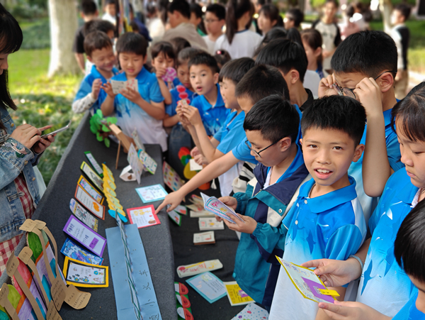 4月17日,為了給學生提供一個自我展現的平臺,學校特此舉行了科普閱讀項目化學習成果展。12個展區,內容、形式精彩紛呈,不僅有“科學家人生經歷手賬”,“趣味科學知識備忘卡”,“‘我問你答’知識手卡”,“手繪地圖”,“葉脈書簽”等閱讀作品,還有苔蘚微景觀,無患子手串、香皂、洗手液等實物,以及現場演示科學小實驗……同學們在老師的帶領下,輪流觀展,互看互學。通過聆聽講解員的講解、閱讀書籍作品、動手參與體驗,同學們對神奇的科學世界產生了更大的興趣,對閱讀科普類書籍的熱情也更加高漲。