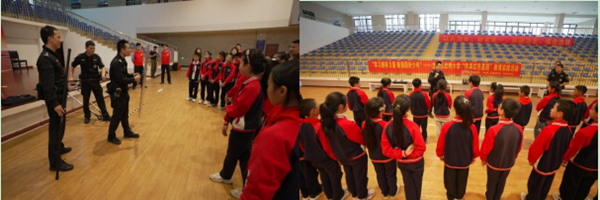 傅警官邀請特警叔叔為同學們展示常用的警用裝備,如防爆頭盔、警棍等。孩子們在特警叔叔的指導下近距離體驗警用裝備,興致高漲,直接把活動推向最高潮。特警叔叔向孩子們展示約束型裝備、防御型裝備及基礎警務技能,在各式各樣的裝備面前,同學們的好奇心被充分激發。