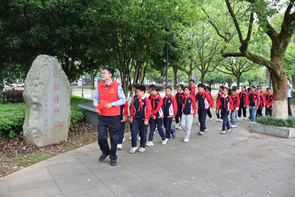 進入十里坪黨建公園,濃厚的紅色教育環境氛圍撲面而來?!澳銈冎谰畬皆谀睦飭??”“長征的故事,令人動容,你有熟悉的發生在長征期間的故事嗎?”……傅警官一連拋出幾個問題,和同學們親切互動,激發學生學習興趣,和諧愉快的紅色之旅便在傅警官生動地講述中拉開帷幕。