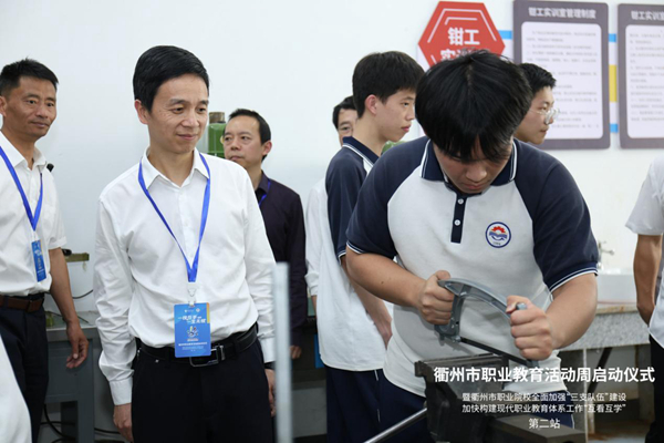 “職業教育是發展新質生產力,支撐‘工業強市、產業興市’的重要力量,是輸送‘三支隊伍’的主渠道?!奔靖鶋郾硎?,要以此次活動周為契機,立足產業所需所求,教育所能所向,學生所想所愿,緊貼衢州新材料、新能源等六大標志性產業鏈,深化校企合作、產教融合,著力打造一批具有全省乃至全國影響力的市域產教聯合體。要推動“五統籌”改革迭代升級,深入推進職業院?!半p高建設”,加快辦好一批優質院校、優質專業,切實提高職業教育適應性和吸引力。要深入推進長學制貫通培養,用心用情、因材施教,力爭讓每一個職教學子“未來有通道,發展有空間”,在自己最適合的專業、最滿意的規劃中,走好成長成才路。