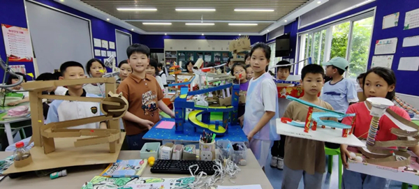 一至六年級學生全體參與科普閱讀分享,三年級“驚險過山車”,四年級“自制動力小車模擬精準停車”,五年級“我的觀光大船設計制作與試航”,六年級的“對話太陽系”,以上課程設計,基于學生生活經驗,以解決學生身邊的實際問題為引,通過量身定制學習單引導學生探索實踐,激發學生好奇心、想象力和探究欲,培養學生發現問題、分析問題、解決問題的能力,引領學生提升科學素養,發展工程思維,孕育創新精神和當科學家的夢想。