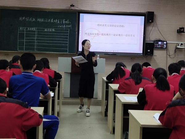 江山市城北中學的王曉麗老師以時評為例探究了論述類文本的復習策略。王老師以論述類的相關知識為切入口,緊緊圍繞“新聞事件”“論點”“論據”以及“論證結構及思路”四個層面開展課堂教學,讓學生清楚此類考題“考什么”以及“怎樣解”的問題,帶領學生總結提煉出了相關的解題策略。