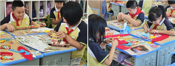 五年級的孩子們則結合繪畫和竹編技藝,創作了具有特色的竹編作品。他們將自己的創意和想象融入作品中,創作出了一幅幅精美絕倫的竹編畫作。這些作品不僅展示了孩子們的才華和創造力,也傳承了傳統文化的精髓。