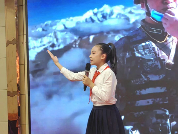 王語彤同學帶來詩朗誦《英雄》。英雄是什么?英雄是在生死面前敢于踏出一步的人。英雄是什么?英雄是在危難之時敢于邁出一腳的人。英雄是什么?英雄是渾身彈孔仍用雙臂抱緊紅旗的人。