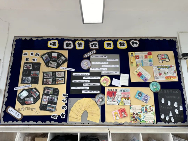 學校積極宣傳和普及心理健康知識,讓師生關注自身心理健康,樹立正確的心理健康觀念,營造健康、和諧、良好的校園育人氛圍,各班進行了“情緒管理”為主題的班級文化布置活動。其中“夸夸墻”的設計讓同學們找回自信、“樹洞”成了大家釋放壓力的法寶,各個班級在班主任帶領精心布置,用一幅幅精美作品宣傳心理健康知識,不僅美化班級也加深了同學們對心理健康的了解和知識。