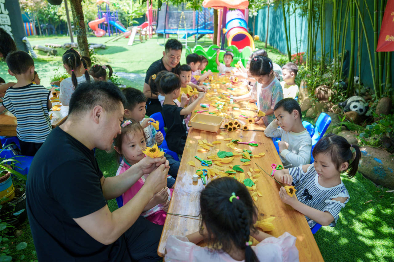 放學時,孩子們將自己親手做好的向日葵獻給爸爸,提前祝爸爸:“父親節快樂!”(三衢客戶端供稿,作者:劉蕓)
