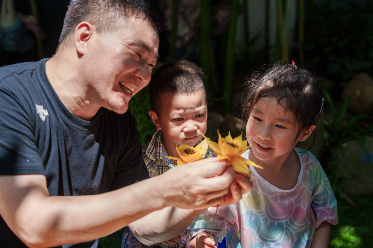 本周日,是父親節。6月13日上午,衢州市柯城區黃家街道博雅幼兒園在父親節來臨之際開展了“‘匠心圓夢’剪紙非遺進村社”公益課堂活動。省級非遺項目柯城剪紙傳承人鄭志輝教孩子們制作送給爸爸的禮物——向日葵,在豐富孩子們課堂文化的同時,也傳承傳統文化。