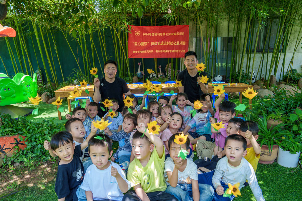 “看!這是我做好的向日葵?!苯涍^鄭老師的耐心指導,一朵朵金黃色的向日葵映入眼簾?!拔覐男【烷_始剪紙,深深感到非遺傳承的核心是人,要‘一手牽著孩子,一手扶著老人’,讓非遺得到傳承,讓文脈得以賡續?!编嵵据x表示,他從小在奶奶剪紙藝術的熏陶和啟蒙下,走上了剪紙藝術道路。30多年來一直在剪紙藝術創作不停的摸索與創新,不斷創作出具有時代特征的藝術精品,2024年,鄭志輝的剪紙藝術入圍的衢州市柯城區社會組織公益創投項目、柯城區民政局福彩公益金資助項目。