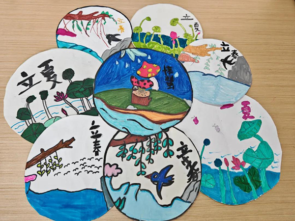 音樂設置了唱童謠的闖關項目 ,設計遵循童趣化、主題化的思路,緊扣音樂核心素養理念,讓孩子在活動中體驗學習音樂的快樂。在美術活動中,小朋友們手持畫筆,將節氣特點用畫筆形式展示在畫紙上,這既能展現孩子們的繪畫技巧,還考查了孩子們對節氣知識的了解。