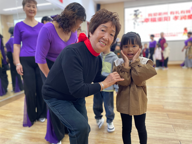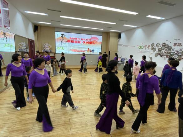 活動中,長者們作為榜樣,向孩子們展示了從容的姿態與自信的風采;孩子們則用純真的模仿與燦爛的笑容,為課堂注滿活力。在專業老師的指導下,“一老一小”攜手練習,彼此鼓勵,現場洋溢著溫暖與歡笑。同時,志愿者還為孩子們講述了重陽節的由來與意義,將“尊老、敬老”的傳統美德植入童心。